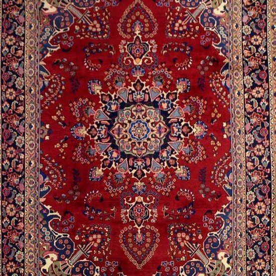 campo a motivo floreale nei toni del rosso, blu, beige e celeste, cm 326x236