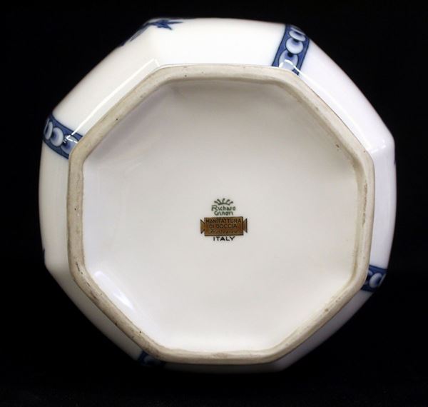manifattura Richard Ginori in porcellana decorata in policromia nei toni dei blu, lumeggiature in oro, alt.cm 46.5