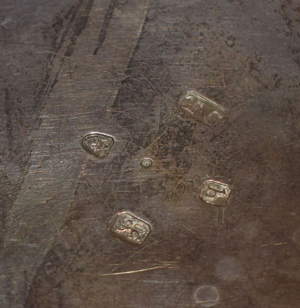 in argento , corpo con fasce scanalate , manico a voluta , alt. cm 18 g 910 ,