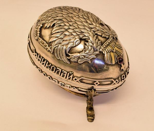 riproduzione da Fabergè , in argento cesellato , interno vermeille