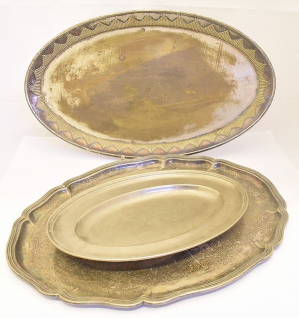 in metallo argentato di forma ovale con ringhierina traforata cm 64X40