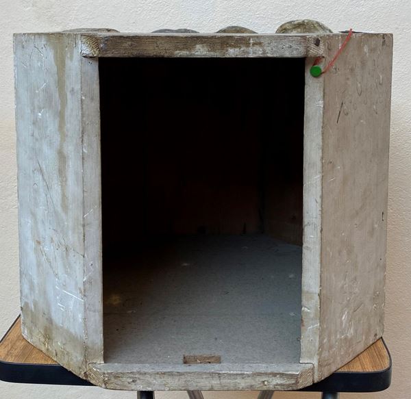 in legno, a sezione ottagonale decorato a nuvole centrato da cherubino in legno dorato, cm 40x41,5x32,5