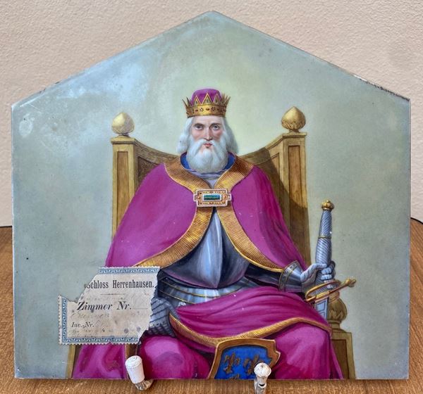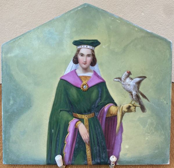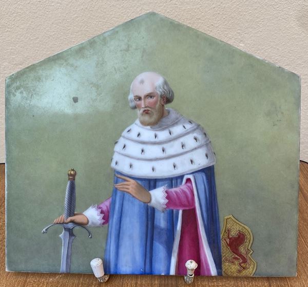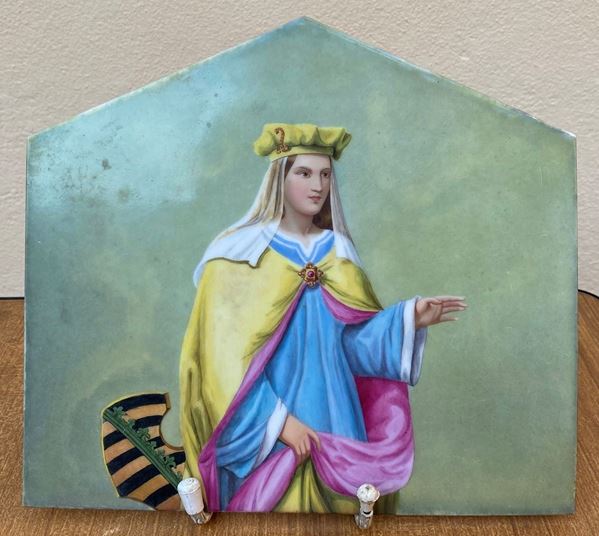 in ceramica, dipinte in policromia raffiguranti regnanti e santi, cm 21x19,5