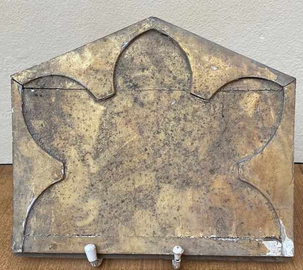 in legno dorato, intagliato e cuspidato, cm 19,5x22, difetti