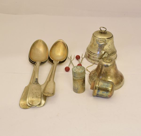 in argento, tra posate,saliere e vaschetta, complessivi g 550