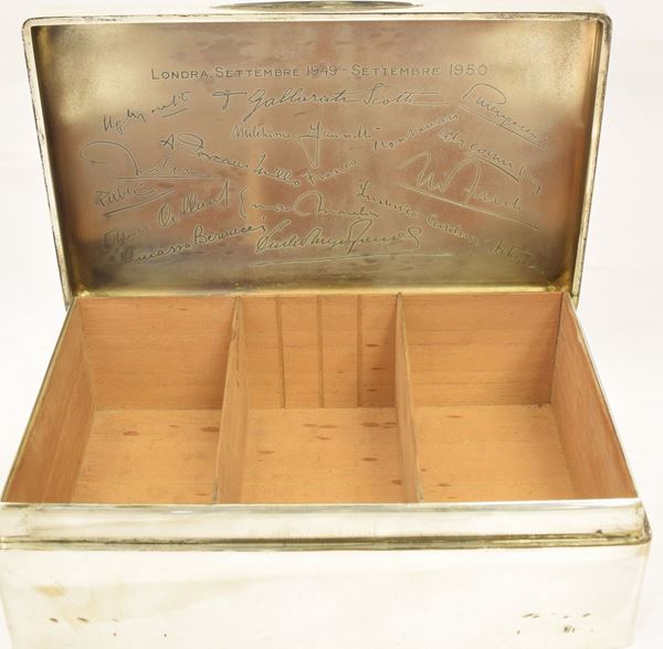 in argento , cm 22X14X7 , coperchio interno con firme incise ,