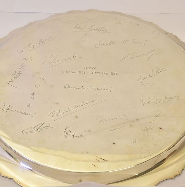 in argento 950 di forma circolare con bordo decorato diam. cm 38