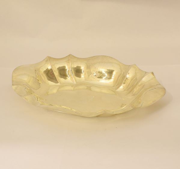 in argento di forma ovale , bordo baccellato, cm 46X36