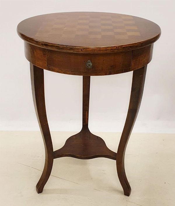 in noce, con scacchiera ed un cassetto, cm 52x70