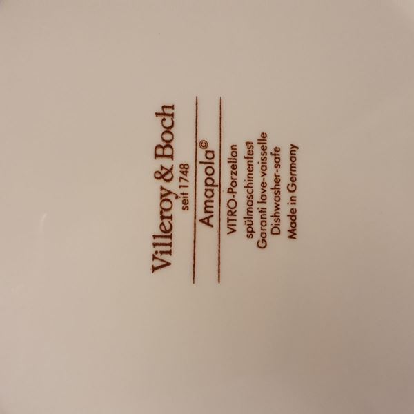 in porcellana Villeroy & Boch, modello amapola, composto da: 16 piatti fondi, 12 piatti piani, 12 piatti da dolce, vassoio e piccola zuppiera, totale 42 pezzi