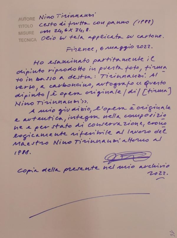 L'opera è accompagnata da autentica del dott. Giovanni Faccenda