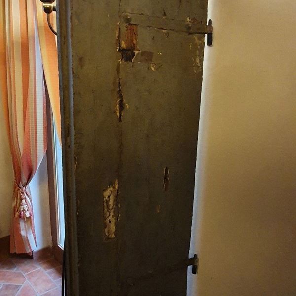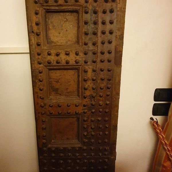 in pioppo con borchie in ferro battuto , cm 46X114 e cm 45X114 difetti