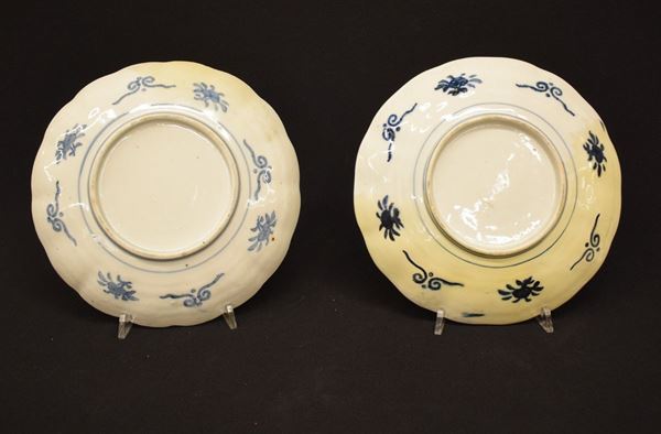 in porcellana decrata a fiori e foglie, diam. cm 21,5, restauri