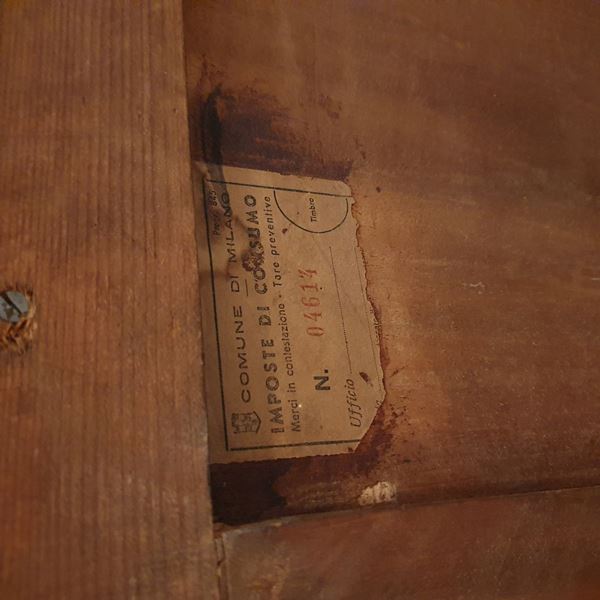 in noce filettato, fianchi mossi, due sportelli, piano in marmo, cm 113x47x91, difetti