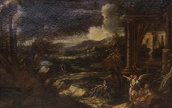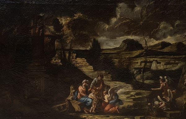 coppia di dipinti su tela,cm. 107x70, difetti.