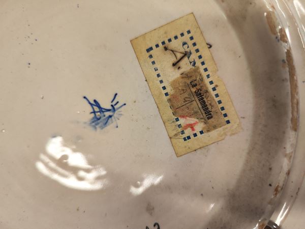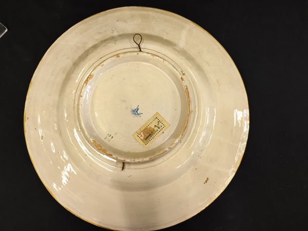 Piatto,sec.XIX, in terracotta smaltata a lustro, manifattura Santarelli