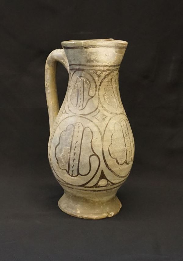 in maiolica decorata a motivi vegetali, alt. cm 23, difetti e restauri