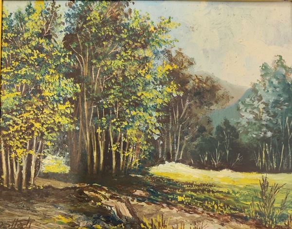 due dipinti ad olio su compensato, cm 12x17 e cm 25x32, firmati