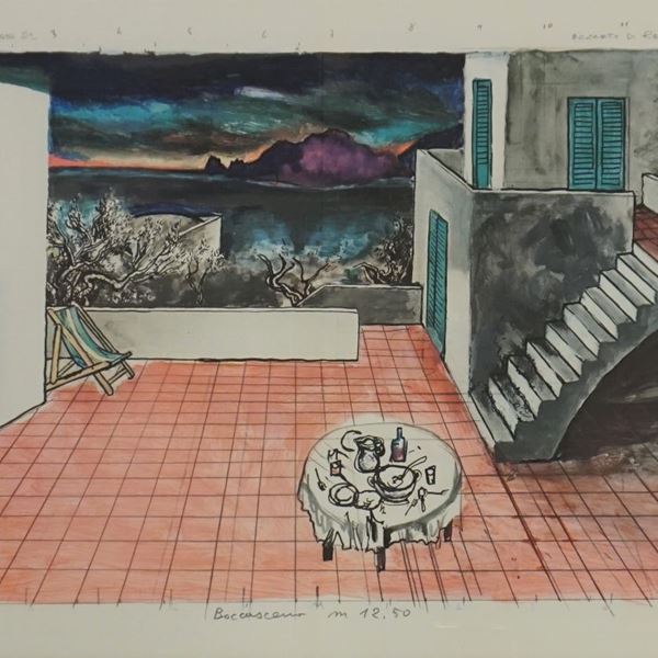 serigrafie, per "il Contratto" di Eduardo de Filippo, un per gli atti primo e terzo, una per l'atto secondo che firmata in basso a destra, cm 46,5x65,8, difetti