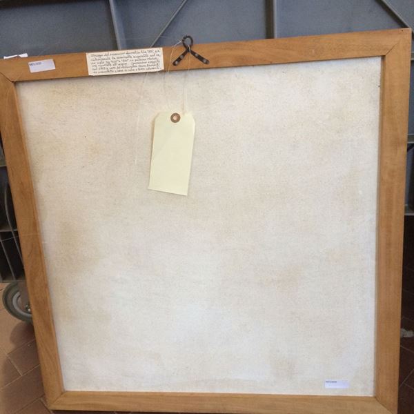 proveniente dalla semivolta di un vano scala in Palazzo Thiene, Vicenza. Operazione eseguita nel 1995 a cura del restauratore Renzo Benedetti su manufatto a base di calce e terre coloranti.