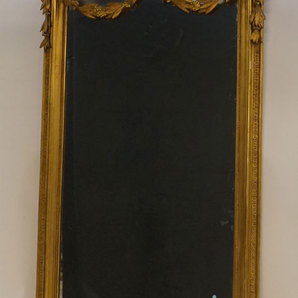 entro cornice in legno dorato e intagliato, cimasa a vaso, cm 105x210, da restaurare