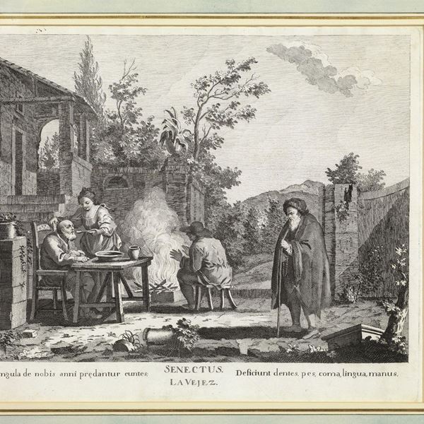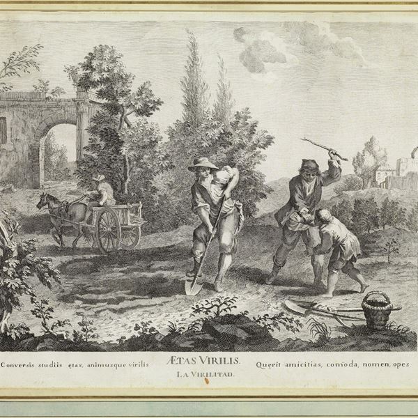 serie di quattro incisioni, cm 48x40 ca, 62x70 in cornice