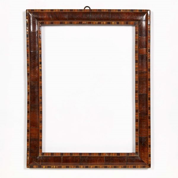 una lastronata in legni vari, l’altra dipinta a imitare tartaruga, misure da ingombro cm 47x37, luce cm 38,2x27,4 a ingombro cm 43x33, luce cm 33x23