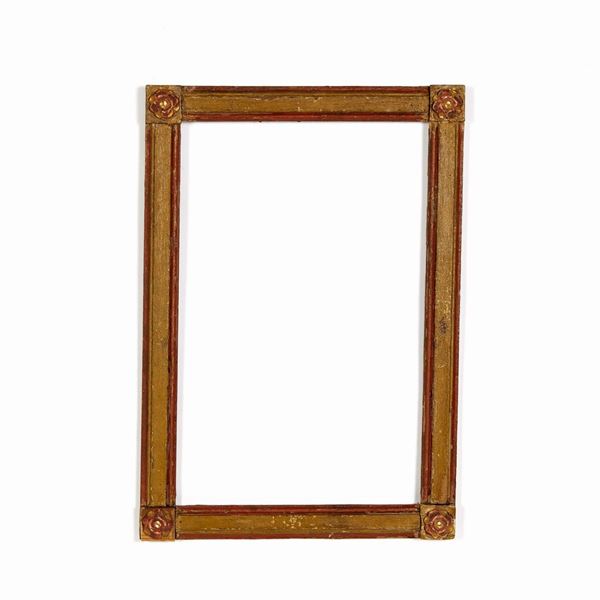 in legno laccato, di cui due con profili rossi e due con profili azzurri, cm 44x30,5, luce cm 37x23,5