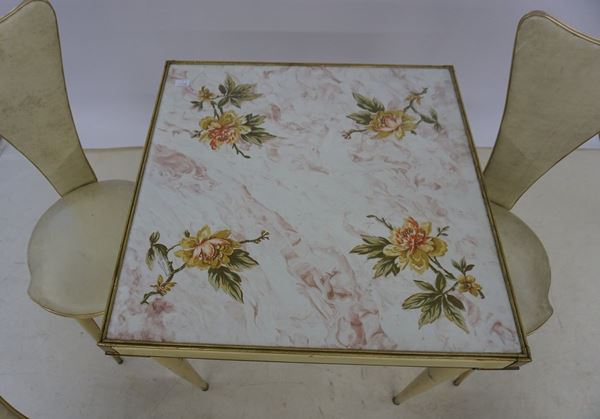 piano quadrato con decoro a fiori, firmato Barbiani, cm 77x77