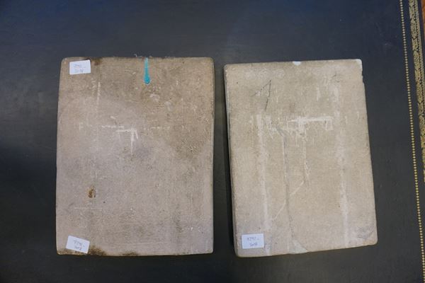 in terracotta invetriata, raffiguranti cavalieri, cm 34x25