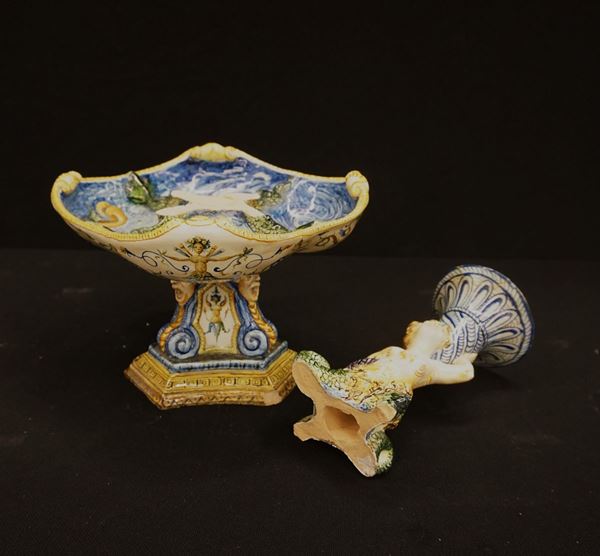 in terracotta smaltata con Sirena e portacandela, cm. 23x36, da restaurare