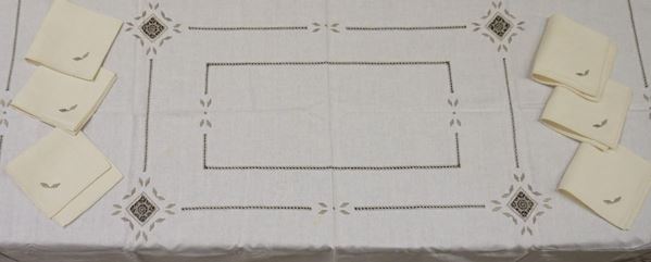 di Lino con decori geometrici, completa di 6 tovaglioli