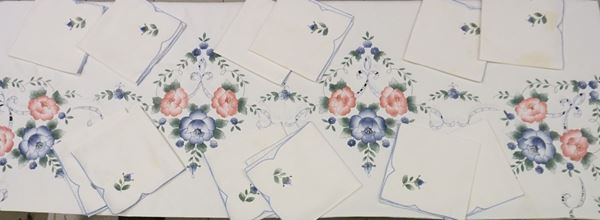 in cotone, con ricami a fiori, completa di 12ntovaglioli