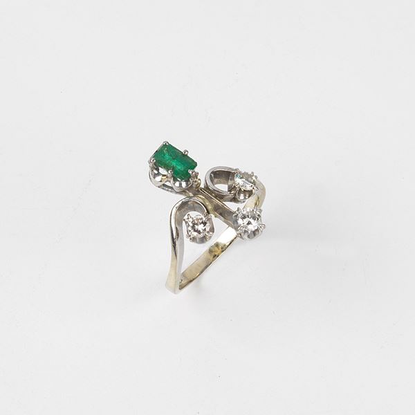 ANELLO IN OPRO BIANCO 18KT, SMERALDO E DIAMANTI