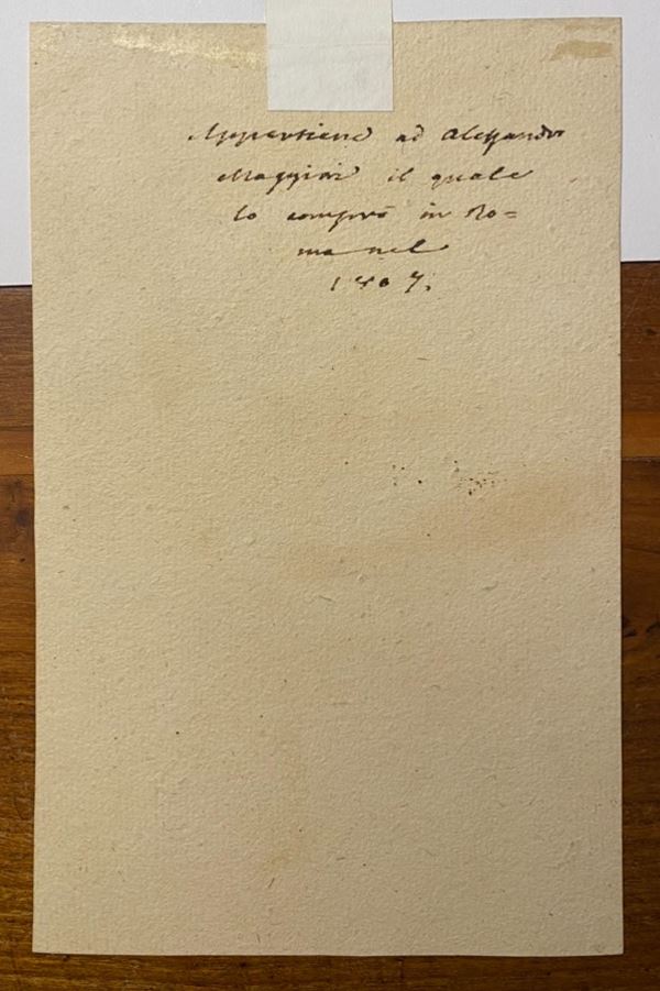 Reca sul versto ad inchiostro la scritta: Appartiene ad Alessandro Maggiori il quale lo comprò in Roma nel 1807