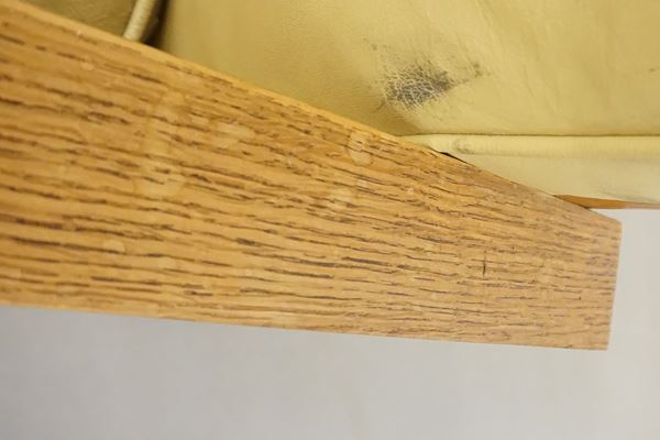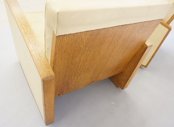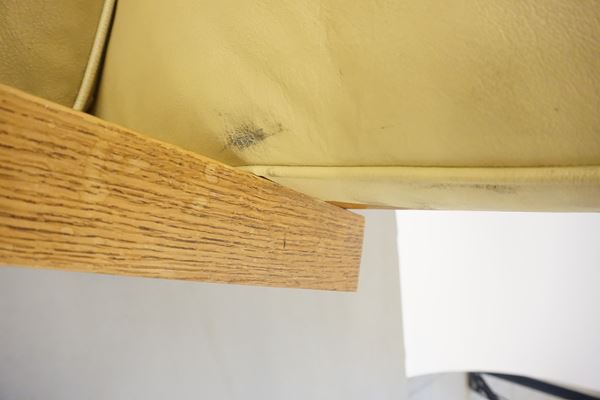 in rovere, rivestite in pelle, cm 74x74x76