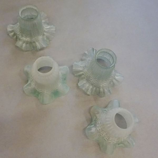 in metallo dorato a sei bracci e sette luci, con sei campanule in vetro, alt. cm 62, diam. cm 80