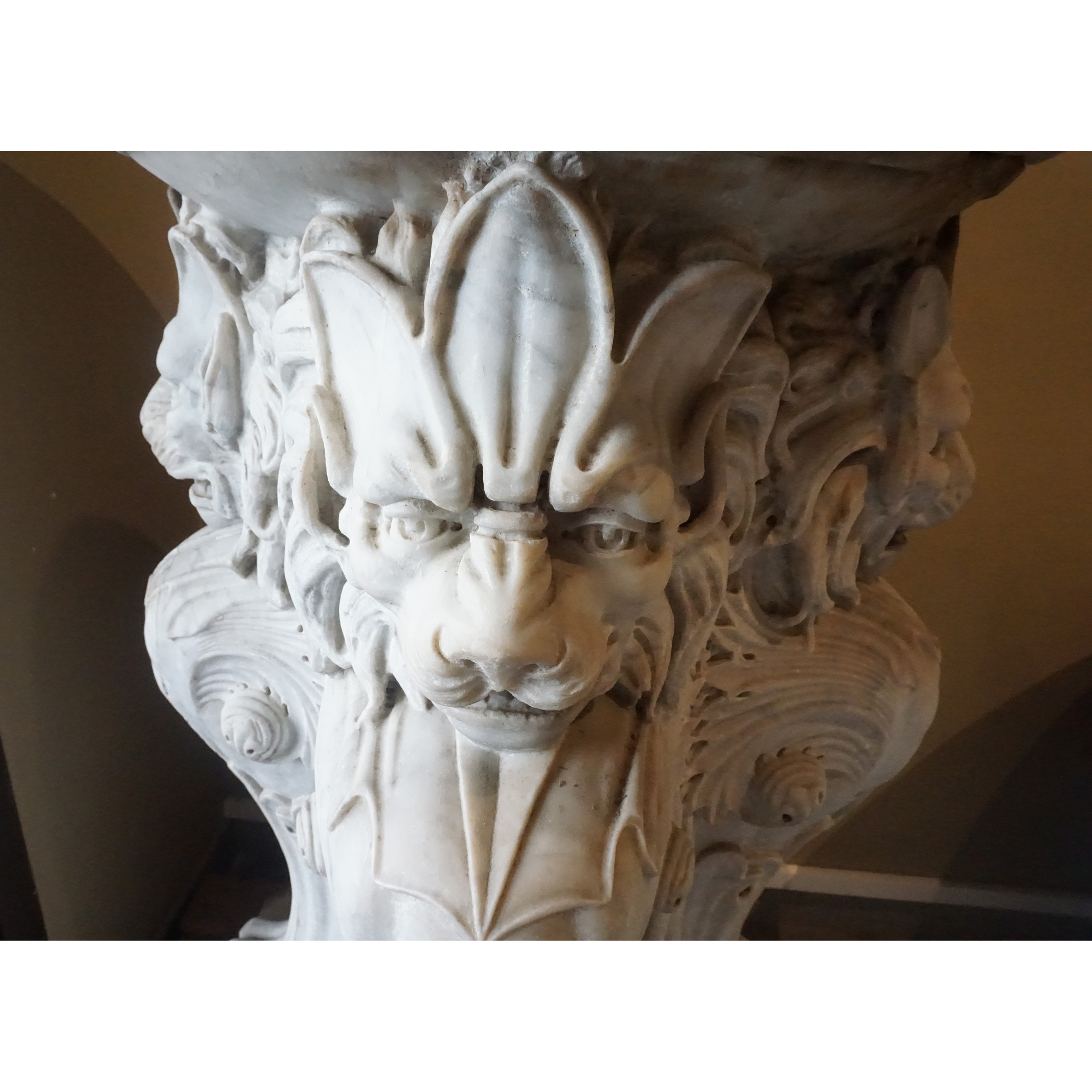 in marmo, sostegni a teste di leoni con finale, piedi felini su base ottagonale, cm 75x110