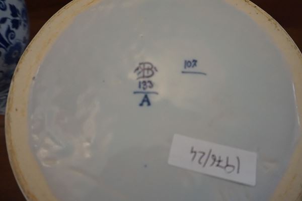 di forma a balautro, in ceramica bianca con decori in blu, completi di coperchio, alt. cm 44