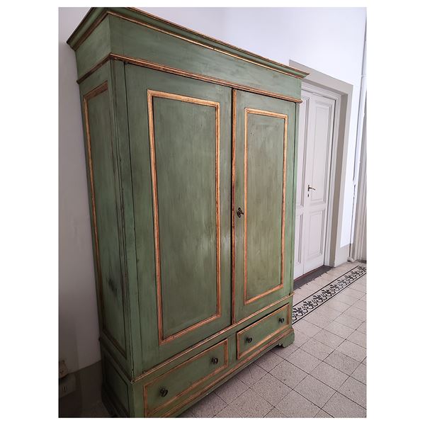 in legno laccato verde, cm 146x50x210 e cm 138x55x197