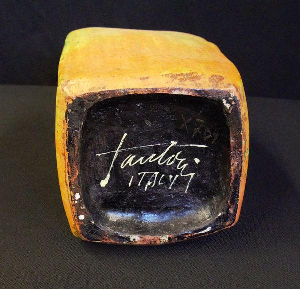 in ceramica dipinta nei torni del giallo e arancio, alt. cm 38
