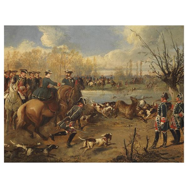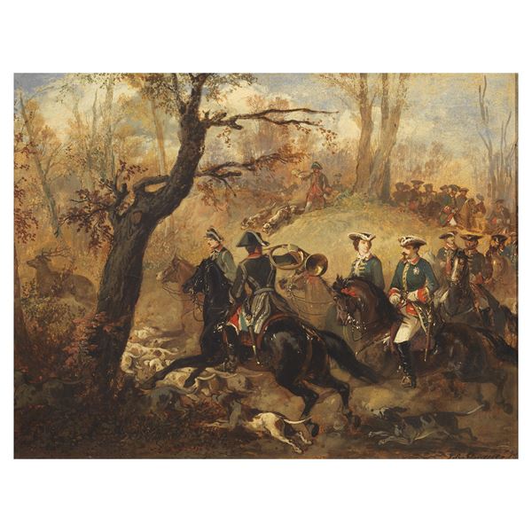 due dipinti olio su carta applicata su tela, cm 33x42,5, firmati e datati "1859" in basso a destra