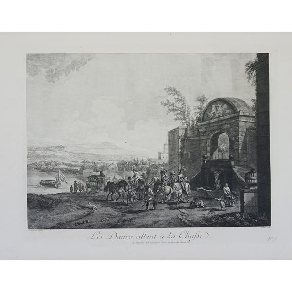 CARDINALE MAZZARINO E CASTELLO CON FIGURE