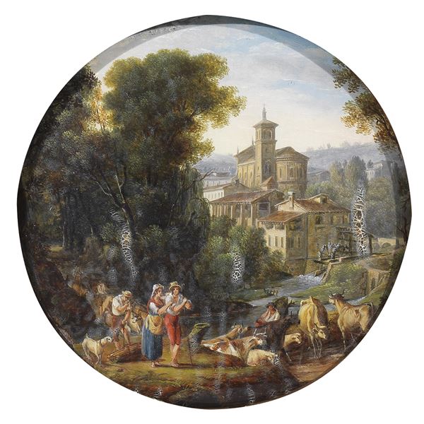 PEASAGGIO CON VILLANI E PAESE SULL SFONDO