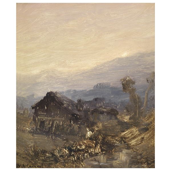olio su cartoncino, cm 26x21, firmato in basso a sinistra