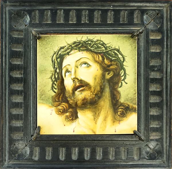in ceramica, raffiguranti Ecce Homo da Guido Reni e Madonna da Filippo Lippi, cm 15x15 entro cornici in legno cm 27x27 e cm 26,5x26,5