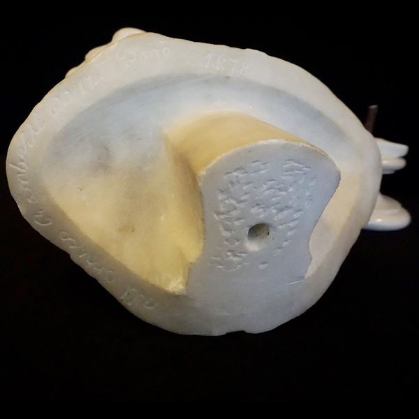 scultura in marmo, sul fondo dedica e datato 1878, alt. cm 40