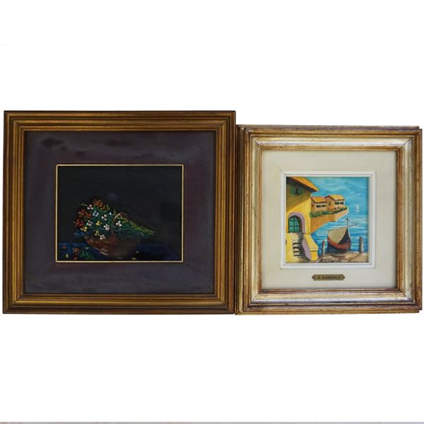 due dipinti olio su tela, cm e cm 15x15 firmato e datato 1979