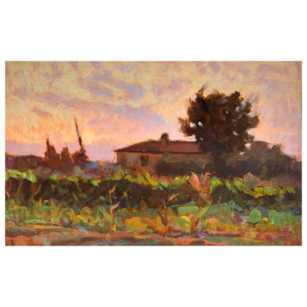 olio su tavoletta, cm 27x44, firmato in basso a destra
