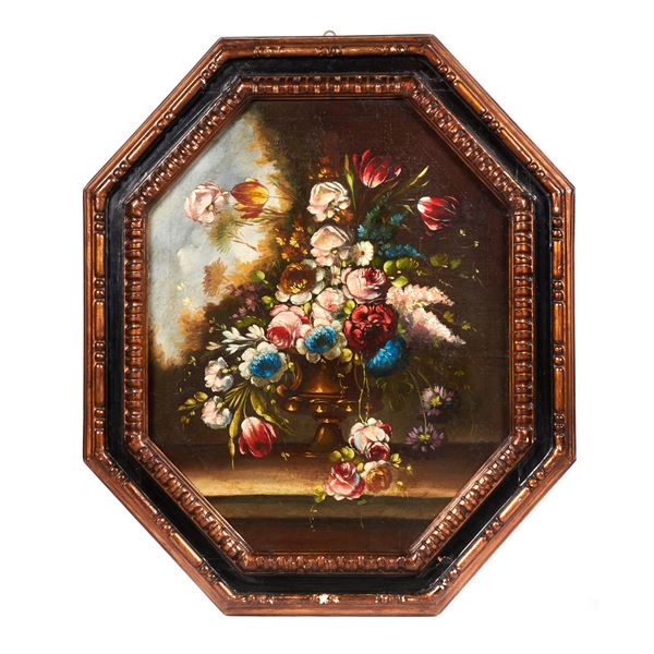 coppia di dipinti olio su tela ottagonale, cm 74x60